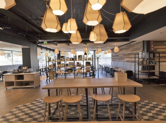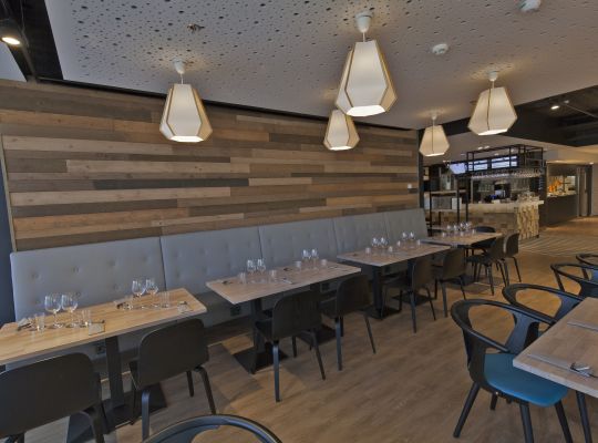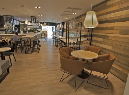 Toteutettiin persoonallinen ravintolasisustus kiinto- ja irtokalusteineen sekä valaisimineen.