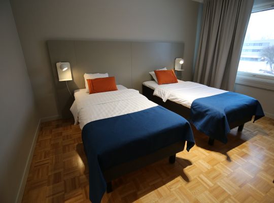 104 hotellihuoneen täysremontti: maalaus ja lattityöt, kiinto- ja irtokalusteet sekä valaisimet.